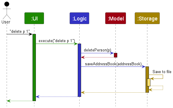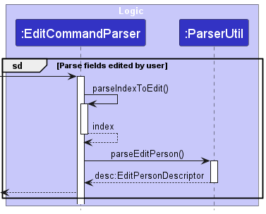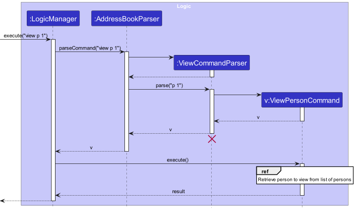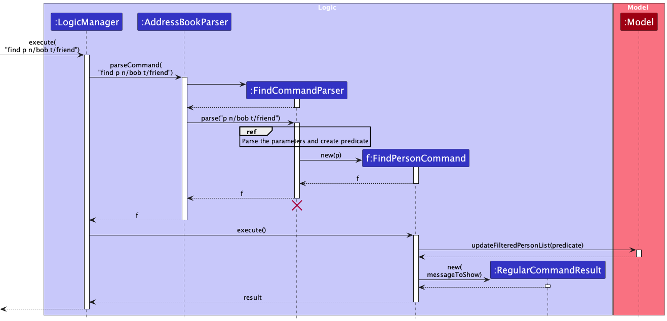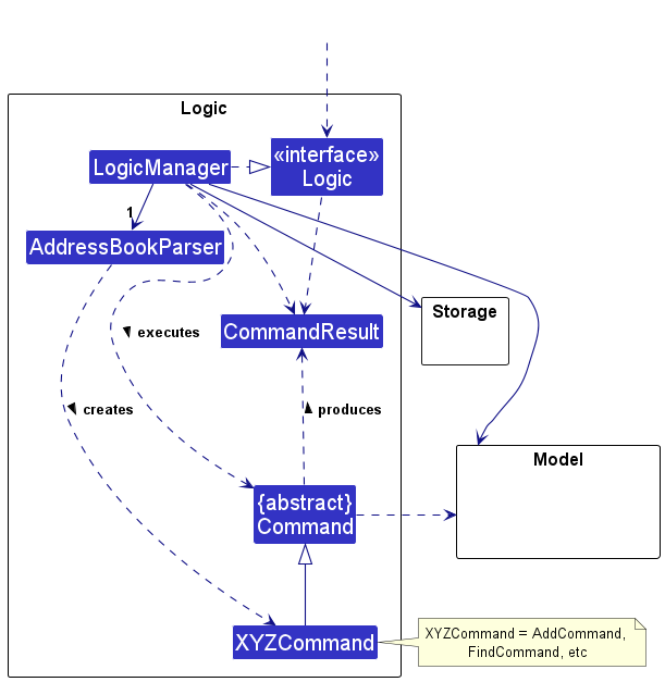Logicis called upon to execute a command, it is passed to anAddressBookParserobject which in turn creates a parser that matches the command (e.g.,DeleteCommandParser) and uses it to parse the command. - This results in a