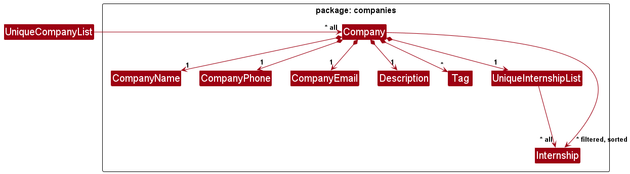 Commandobject (more precisely, an object of one of its subclasses e.g.,DeletePersonCommand/DeleteCompanyCommand/DeleteInternshipCommanddepending on the entity targeted), which is executed by theLogicManager. - The command can communicate with the