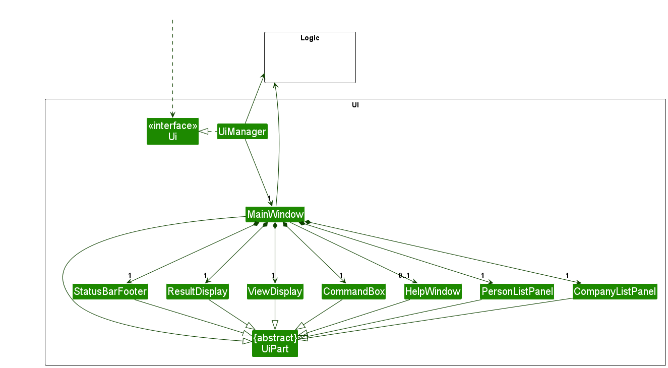 CommandBox, ResultDisplay, PersonListPanel, CompanyListPanel, StatusBarFooter etc. All these, including