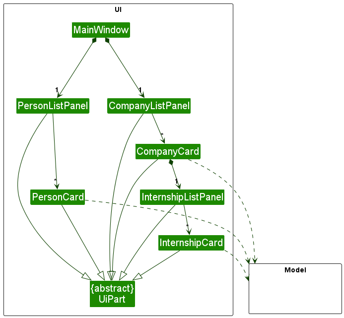 The PersonListPanel and the CompanyListPanel are each made up of different parts, as illustrated in the class diagram